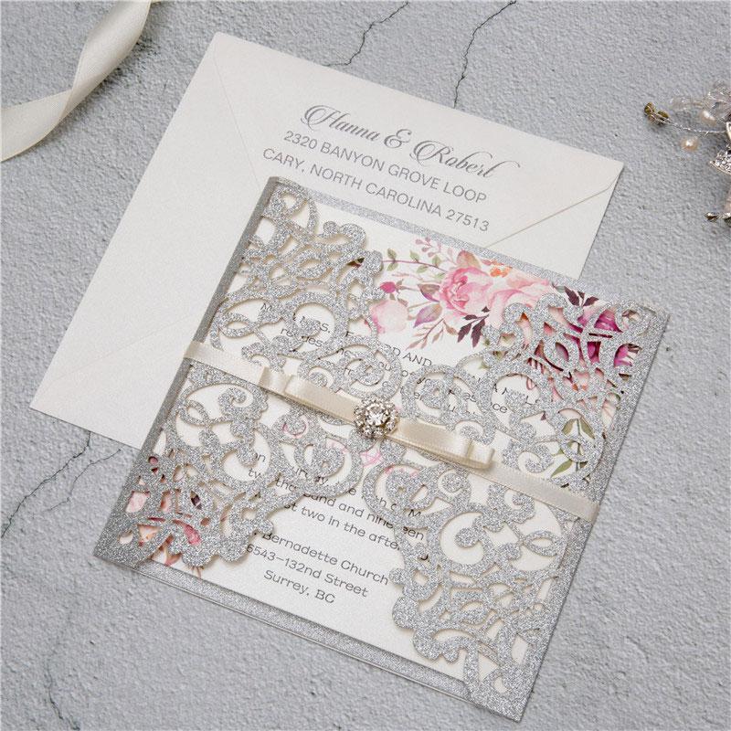 Glitter Laser cut gate fold invitation (only). Many colours available.