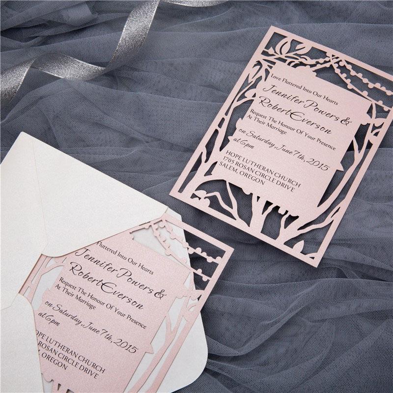 Flat laser cut style invitation with a lace doily design at the top & bottom.